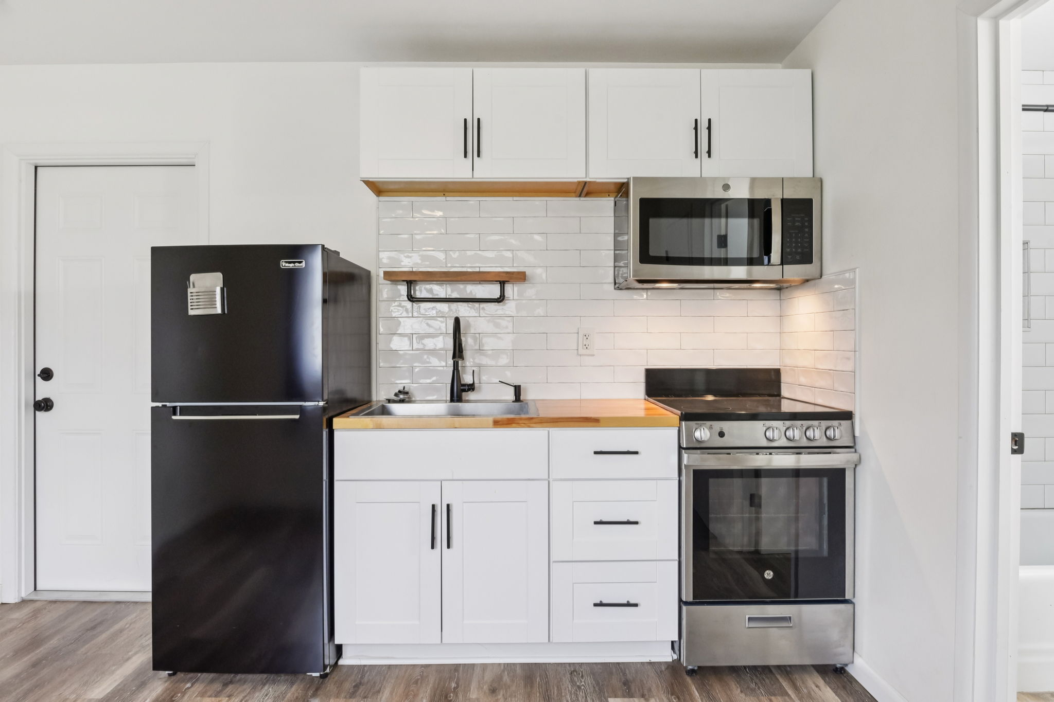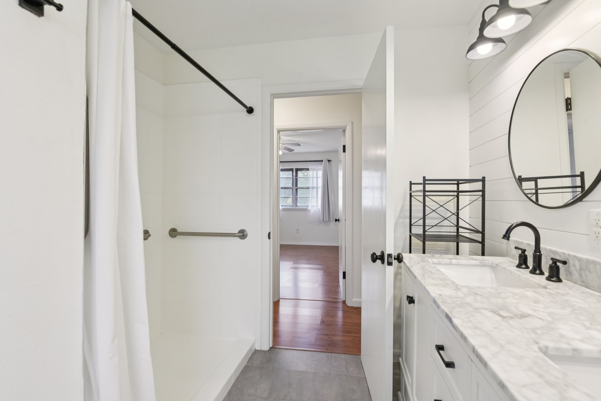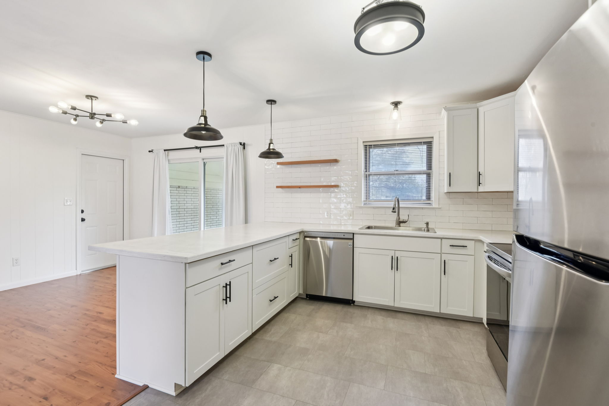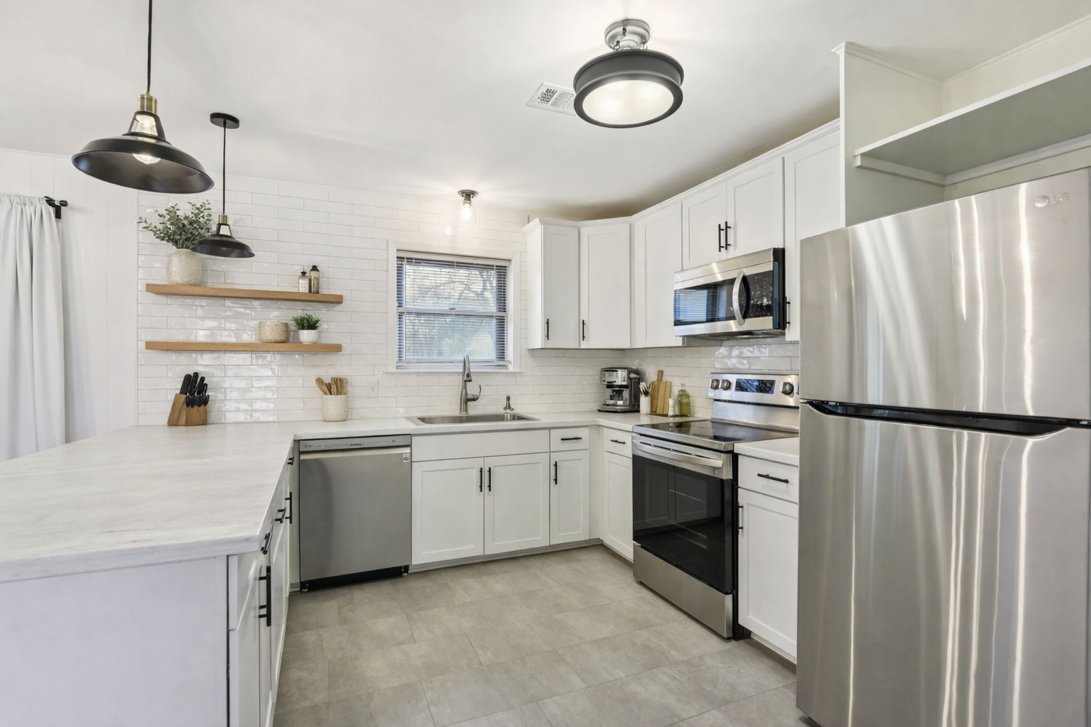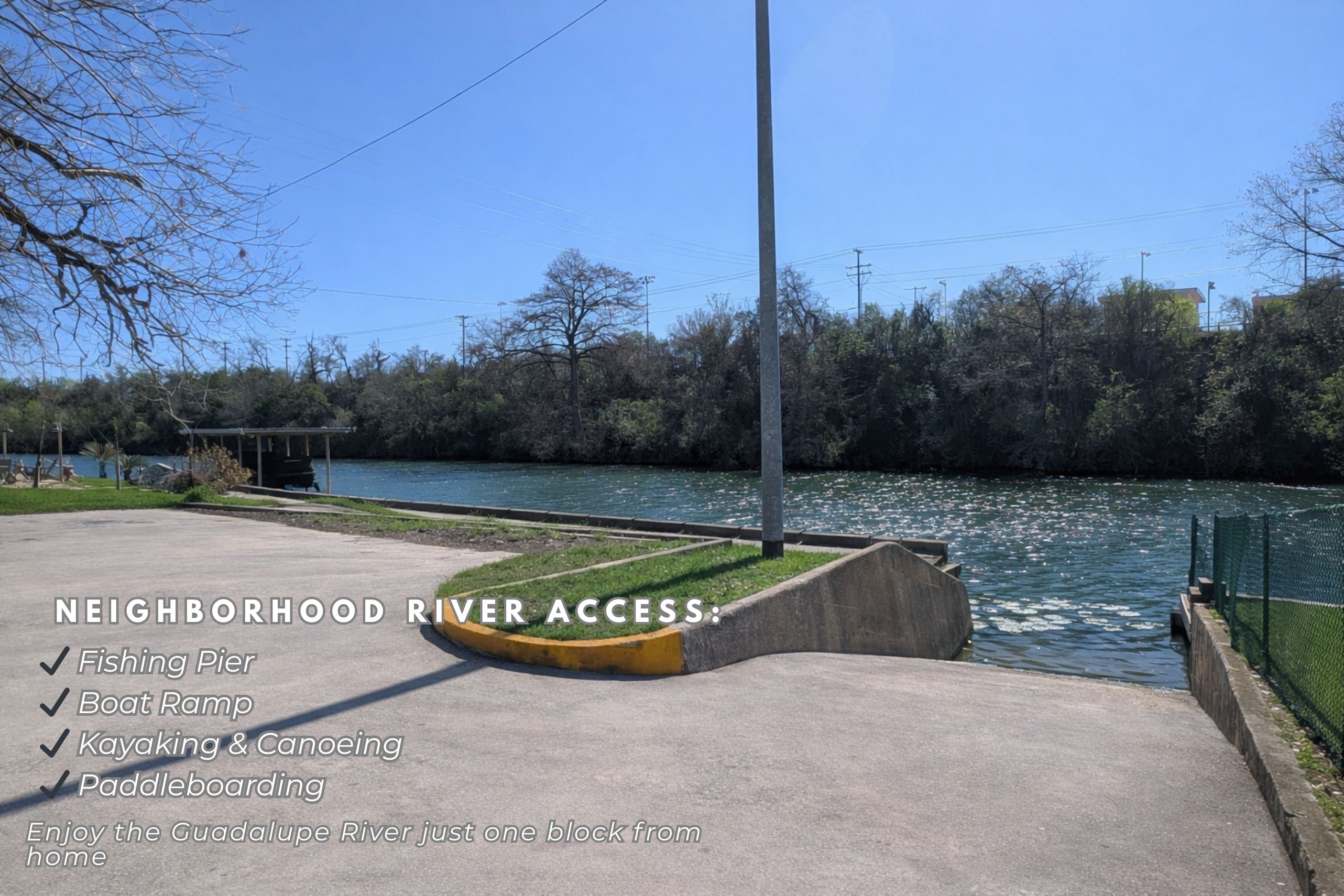 New roof (2024) • Renovated kitchen with updated cabinetry, countertops, and stainless appliances • Three renovated bathrooms with modern finishes • Studio space with full bathroom and kitchenette (stove, sink, cabinets, refrigerator) • Studio is part of the main structure but accessible only through the garage or backyard patio — no direct access from the main house • Zoned R-2 allowing two residences on the property • 0.426-acre lot with expansive backyard • Backyard cross fence dividing the yard • Mature pecan trees and additional shade trees • Large covered backyard patio • Four-sided masonry exterior • Lake Dunlap / Guadalupe River park access with paved driveway, parking, and fishing bulkhead access • Very low HOA – $24/year • Convenient I-35 access for commuting to Austin and San Antonio